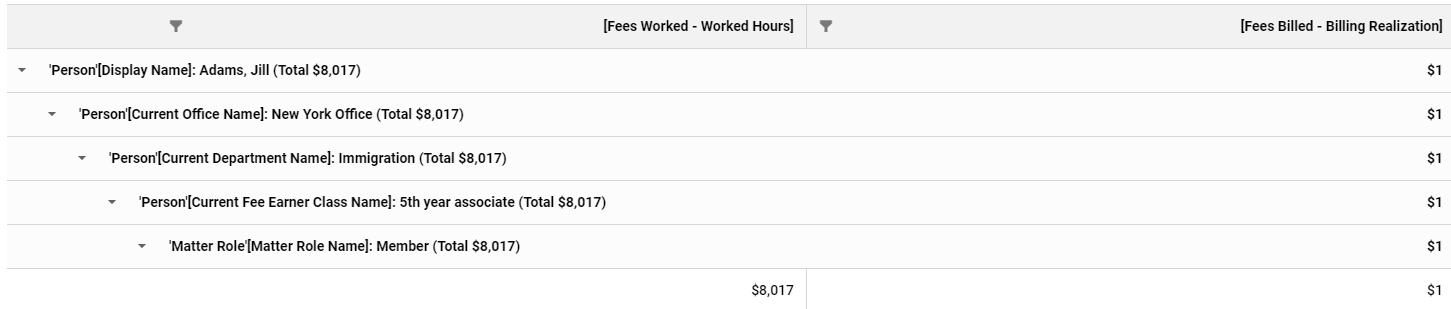 Pivot Grid widget is similar to the regular Grid widget but they provide additional functionality similar to an Excel Pivot table that allows you to drag and drop any of the available fields and quickly reorganize the data in the grid. This widget has a Field Chooser option in the Action menu. You can drag and drop the Column and the Data fields to add or remove the fields and summarize data in the grid.