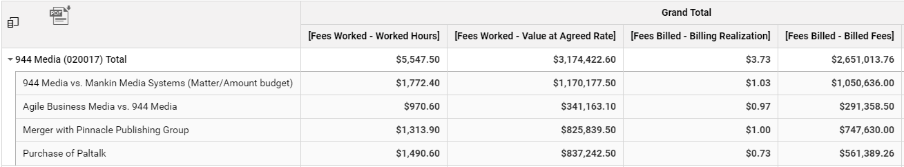 Pivot Grid widget is similar to the regular Grid widget but they provide additional functionality similar to an Excel Pivot table that allows you to drag and drop any of the available fields and quickly reorganize the data in the grid. This widget has a Field Chooser option in the Action menu. You can drag and drop the Column and the Data fields to add or remove the fields and summarize data in the grid.