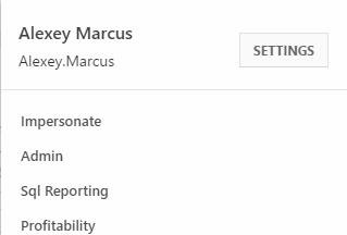 Users with the impersonate feature see the Impersonate option in their user menu.